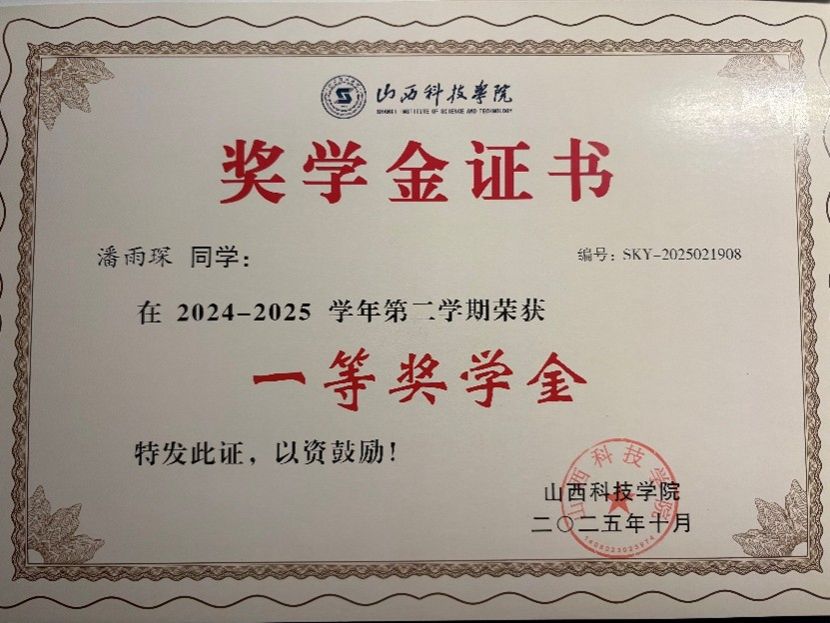 2025年10月,获2024-2025学年第二学期一等奖学金。